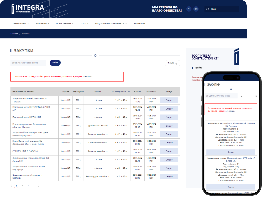 ТОО «INTEGRA CONSTRUCTION KZ» - компания осуществляющая управление крупными инфраструктурными проектами на строительном рынке Казахстана, включая следующие направления: